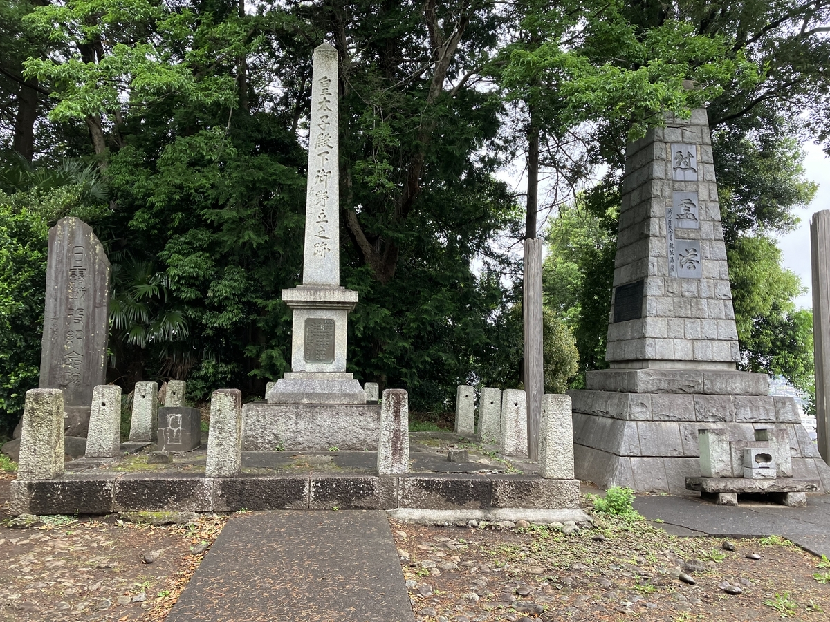 大石神社境内を抜けて、下に降りた丘の上にあるのが、日露戦争戦没者慰霊碑。文字の記載は、消えかかっているけど、陸軍大将・乃木希典書と書いてある。