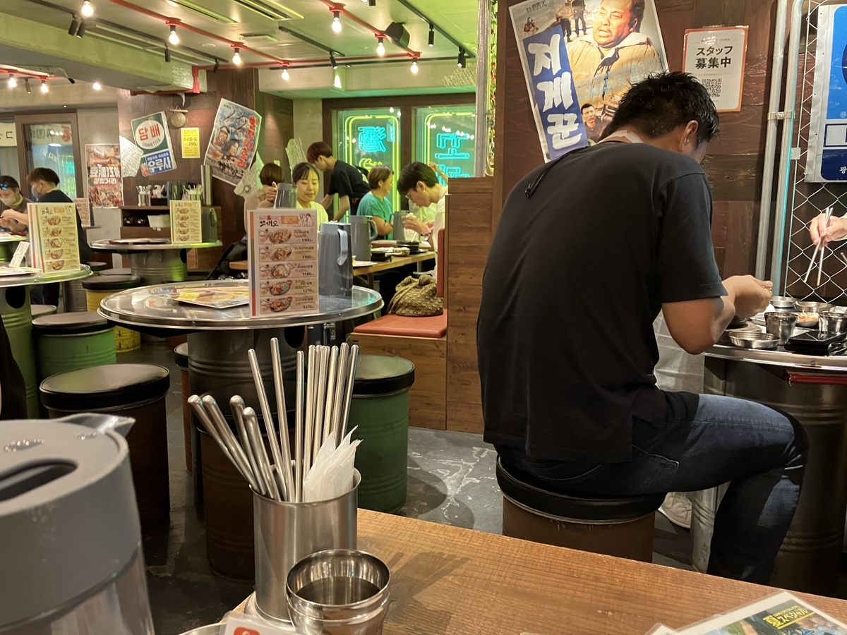 韓国のご飯🍚入れは金属製で手で持たずにテーブルに置いて食べるスタイル。お腹いっぱいになり、支払いを済ませて退店。