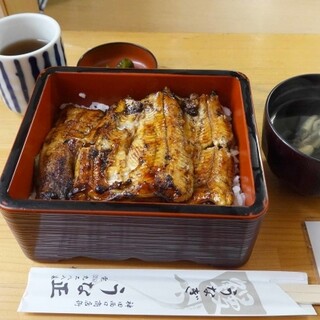 かさねは、ご飯、うなぎ、ご飯、うなぎのサンドイッチ構造。Wうなぎで、びっくりうなきとか命名している店も。