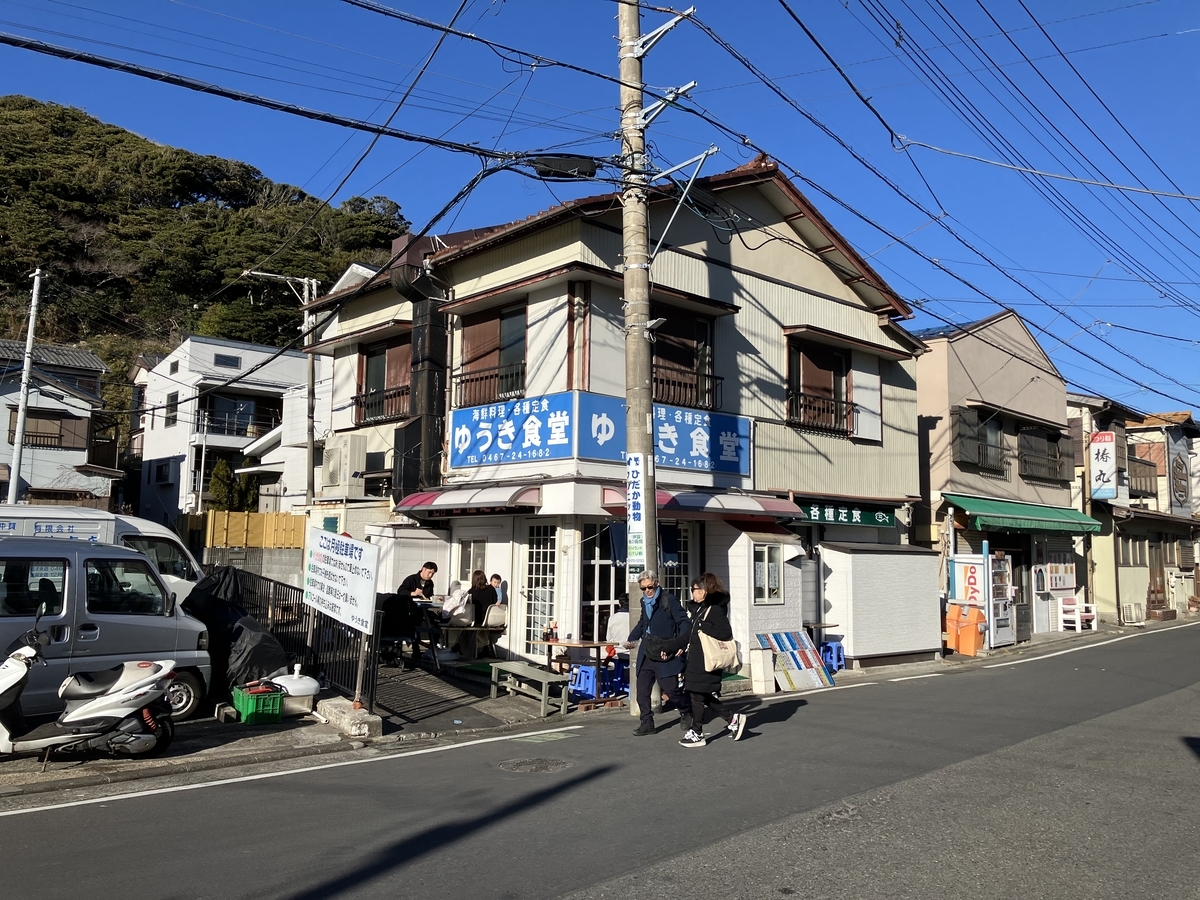 海岸線を抜けて逗子・小坪に到着。自宅から約1時間程度。いつもの場所に🛵を停車して、ゆうき食堂に入店。