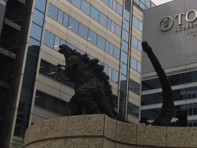 外の東宝広場でゴジラ画像